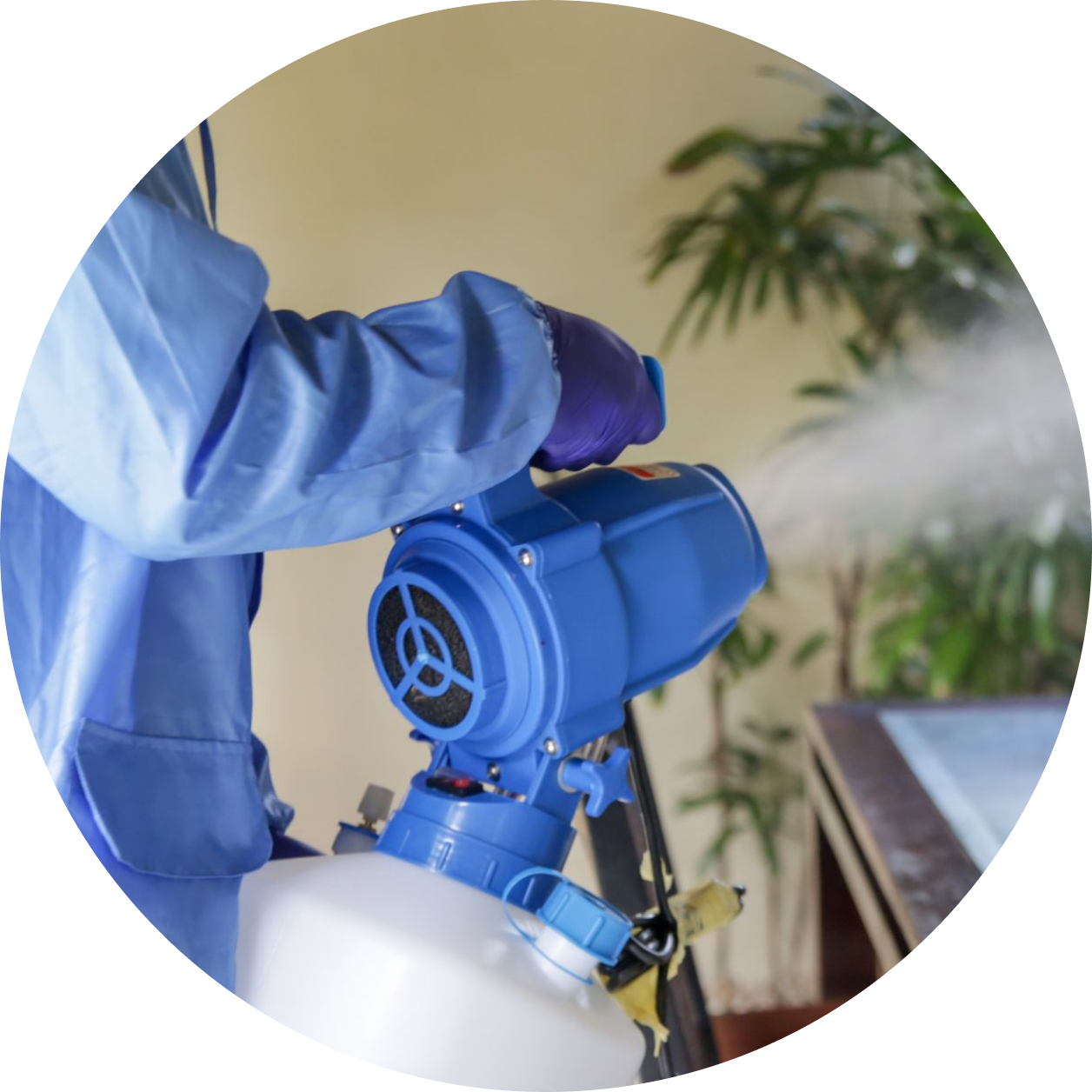 Это метод санитарной обработки, в ходе которого мощные генераторы под давлением преобразуют жидкий препарат в пар и выпускают его в воздух. Мельчайшие частицы жидкости попадают в самые труднодоступные места, оседают на предметах и работают на всех поверхностях. Такой способ в несколько раз эффективнее по сравнению с обработкой обычными бытовыми распылителями.